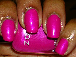Bright pink creme with hot pink shimmer. This polish is getting old and a little thick I need to buy some Zoya Restore to help bring it back to life :)