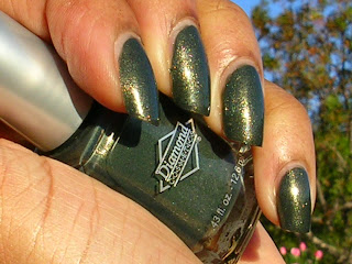 1 coat of Seche Vite and I was good to go! It is a gorgeous evergreen shimmer with gold flecks and it is gorgeous.
