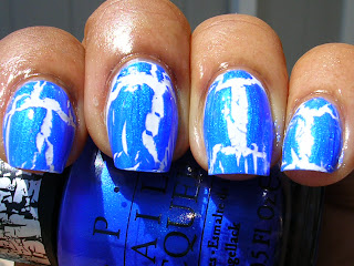This is 1 coat of OPI "Blue Shatter" over 2 coats of OPI "Alpine Snow", and then topped with 1 coat of TC.