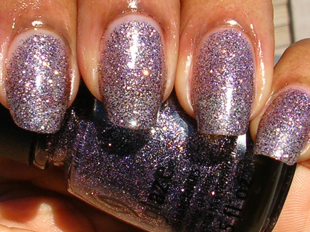 Silver and soft lilac glitter in a clear base. Not as opaque as I'd like, but still a very nice and smooth glitter. This would look great on top of....