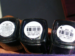 Left to Right: New Bottle (2011), Bottle received in a swap last year (2010), Bottle purchased in 2009.  All 2 coats. NO TOP COAT