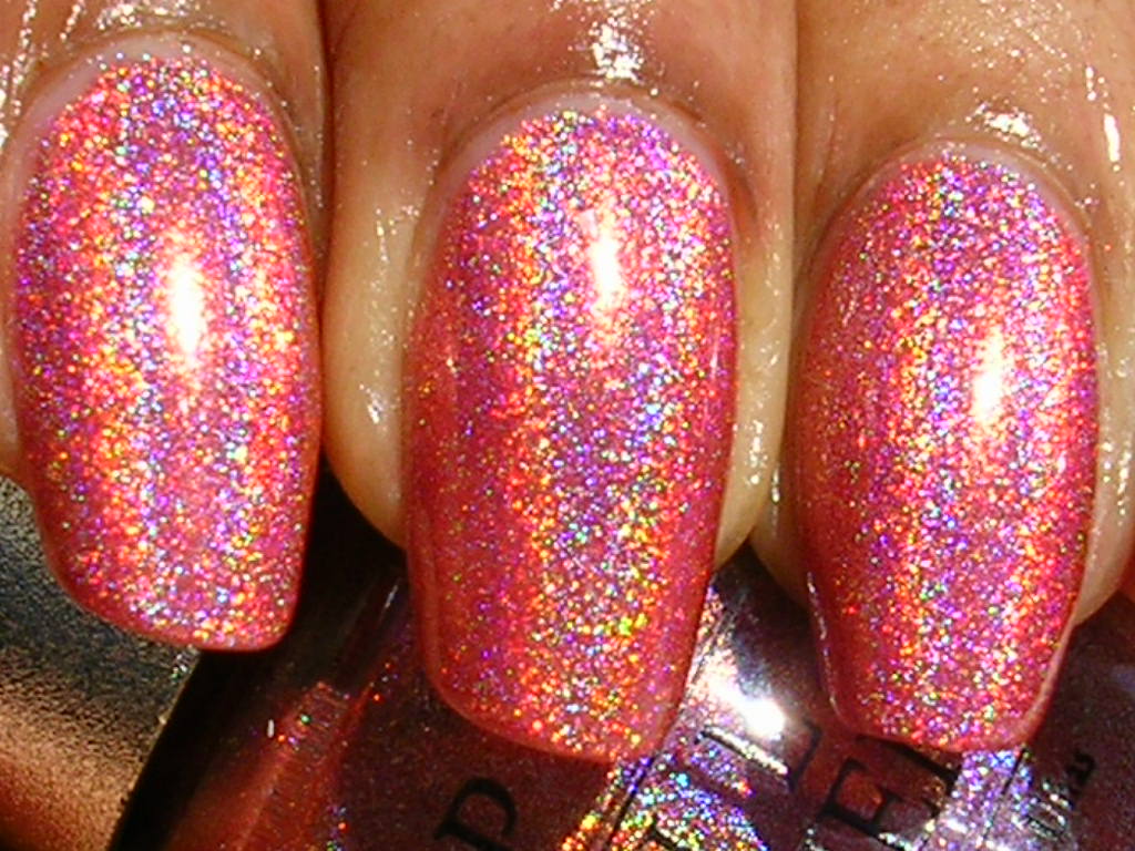 OPI DS "Vintage" is a pink-peach prismatic, holographic wonder! So feminine it would make a monkey's hand look spectacular. :P
