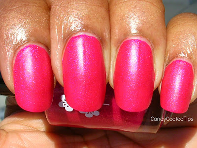 "Every Nook & Cranberry" a matte cranberry satin smooth polish with added pink shimmer. I love "hidden shimmer", but this shimmer is too awesome to hide, LOL! Cranberry is no longer a side dish, bring it on!