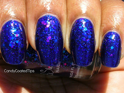 "Excuse Me, I Blurpled" is an ultra violet love fest between blue and purple. Fused with glitters in blue, purple and copper this polish is WINNING my heart over... ten fold! It was opaque in two coats, but I just could not stop applying it, I knew with each coat the party was just gonna get better, LOL! Yeah, it's that good! No application issues.
