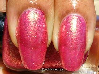 Oh yeah, this is my kind of color!, bright and orange! I wish the metallic shimmer was a bit more dynamic, but I'll take it! Applied well in three coats. The slight VNL you see is not in real life, but my camera seems to think otherwise :) These polishes are blingy!