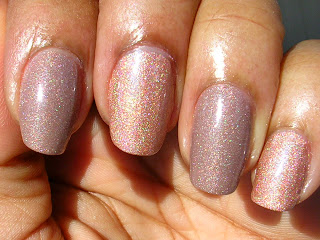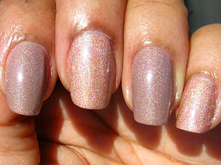 with flash..STILL .....Nope...I agree it's gorgeous, and the greyed out lavender base, with the lilac glitter, it is VERY pretty but I just didn't like it on my hands...I don't know..I'm weird! :)
