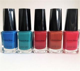 "Coco Rae" core line. The core line contains, cremes, shimmers and glitters. There are 2 blue lacquers in her line that I may have to try out, you know how I love my blues!!!! :P