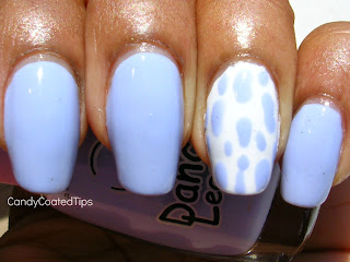 This is how it is normally on my hands. They are hot/warm here. I applied 2 coats of the DL to my nails, and for the accent nail I applied 2 coats of OPI "Alpine Snow", and did a drip decision (using my dotting tool) on top using the DL. Followed by 2 coats of top coat.