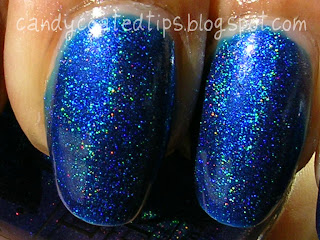 Pretty isn't it!!!! I love blues and this new color is no exception! Here it is 3 coats, because I wanted to really get a saturated holographic look! By the way, it was perfectly opaque in 2 coats. :)